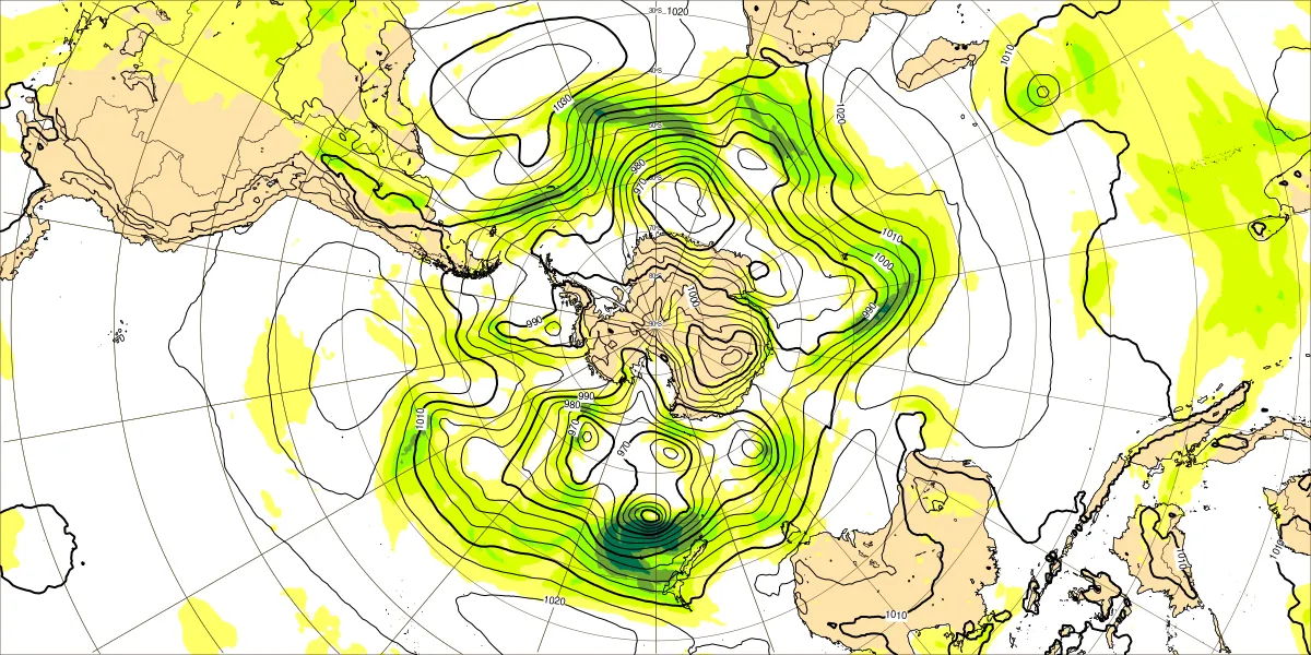 【南半球の500hPa流れ、850hPa気温】