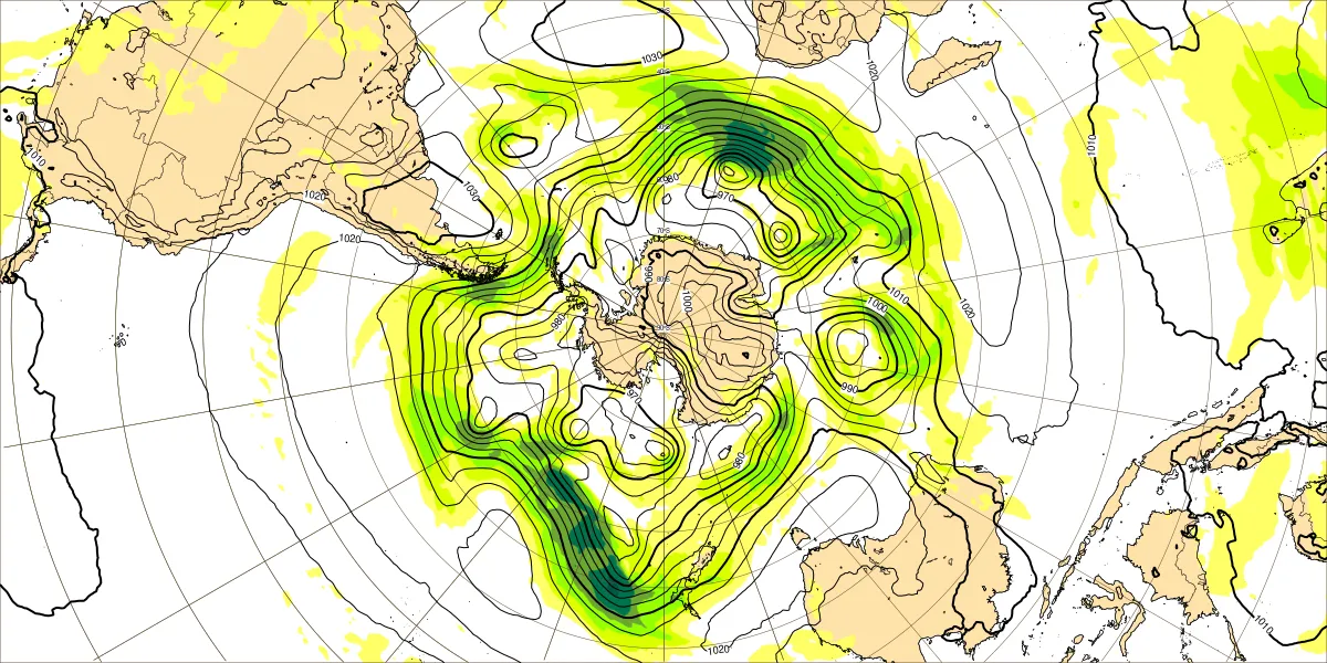 ・ニュージーランドの寒気トラフ:寒気東進、850hPa・0℃線は40Sの少しN