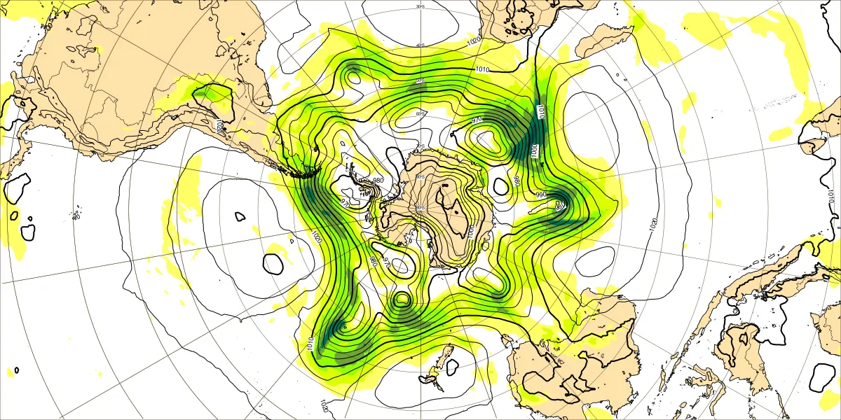 ・ヨーロッパのWの寒気トラフ:寒気南下