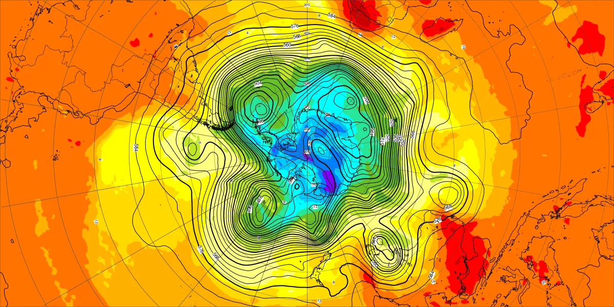 【北半球の500hPa流れ、850hPa気温】