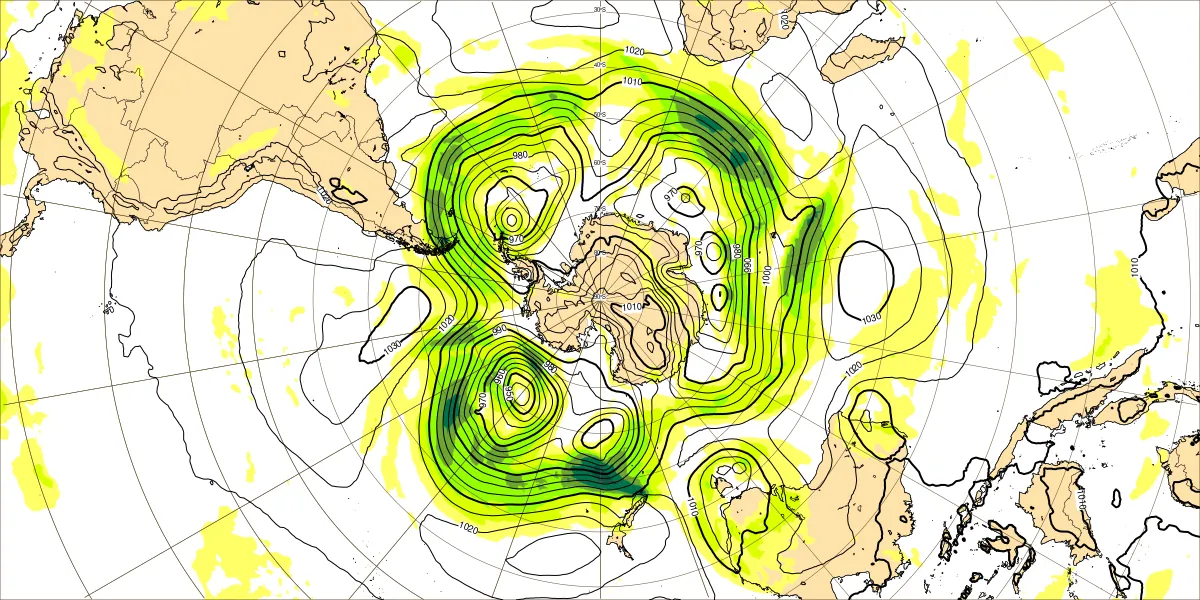【南半球の500hPa流れ、850hPa気温】