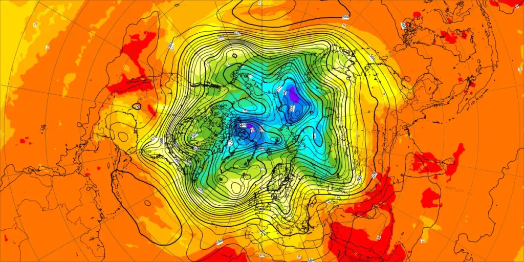 【北半球の500hPa流れ、850hPa気温】
