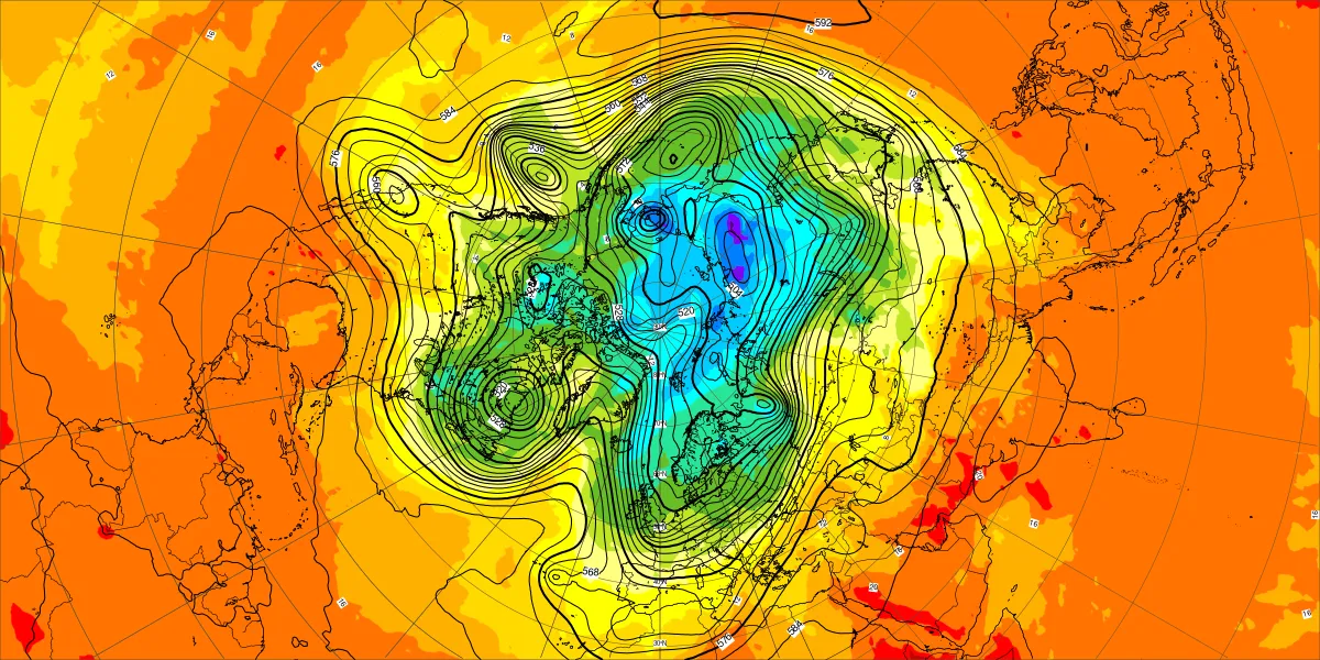 ・偏西風の蛇行は、やや大~大、特にグリーンランドのリッジの流れで蛇行大