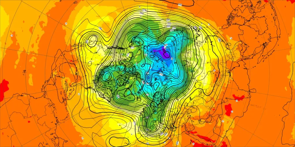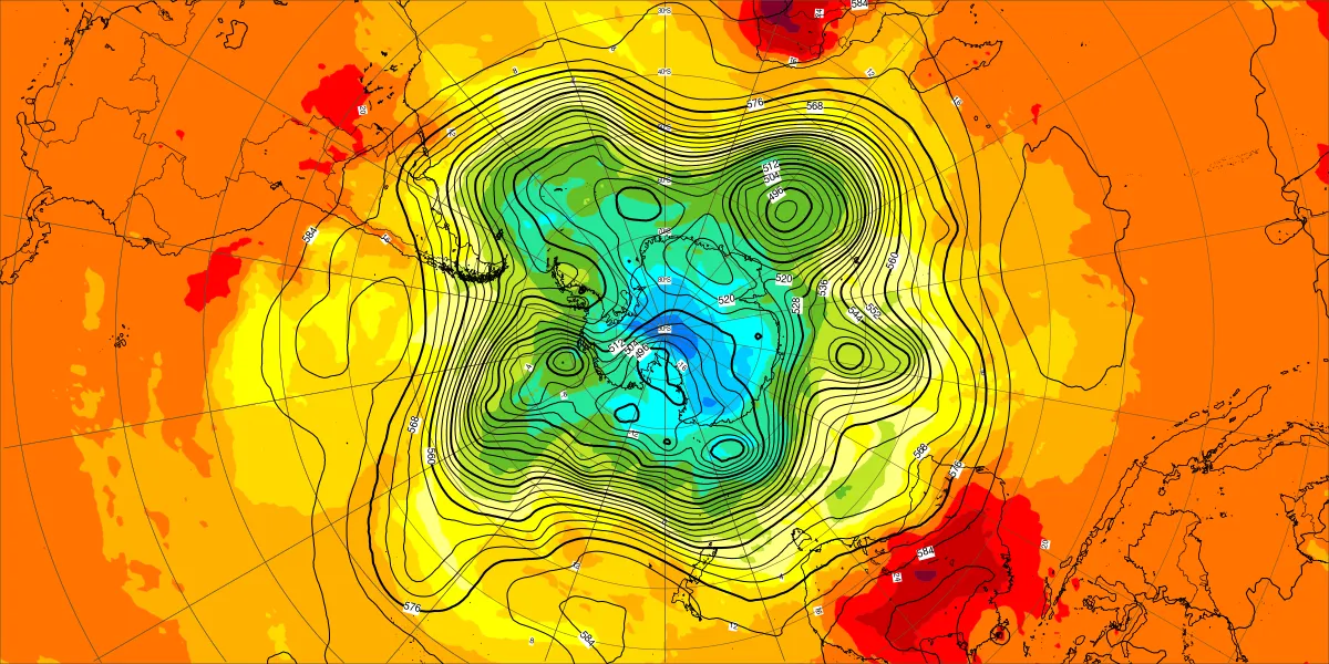 【北半球の500hPa流れ、850hPa気温】