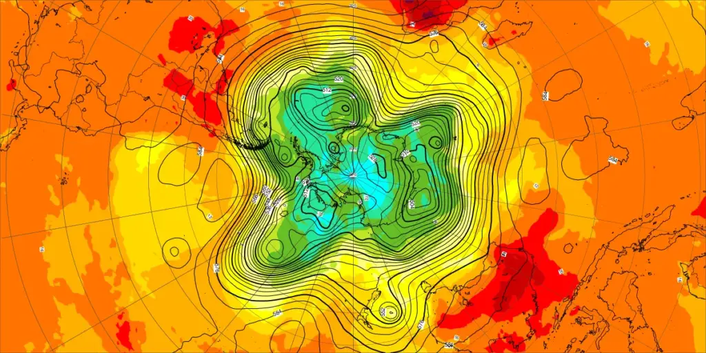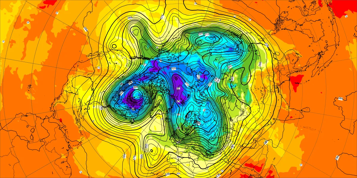 【北半球の500hPa流れ、850hPa気温】