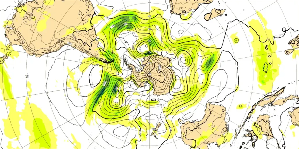 ・ニュージーランドのWの寒冷渦:寒気北上