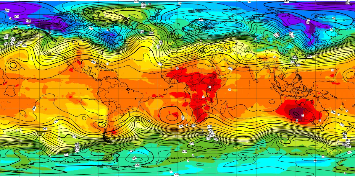 全球大気の流れ、寒気・暖気の状況:2026年1月5日12UTC