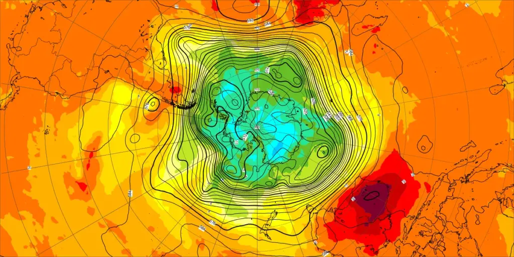 ・ヨーロッパの寒気トラフ:寒気南下、850hPa・-4℃線が40Nまで