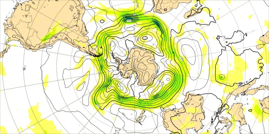 全球大気の流れ、寒気・暖気の状況:2026年1月5日12UTC