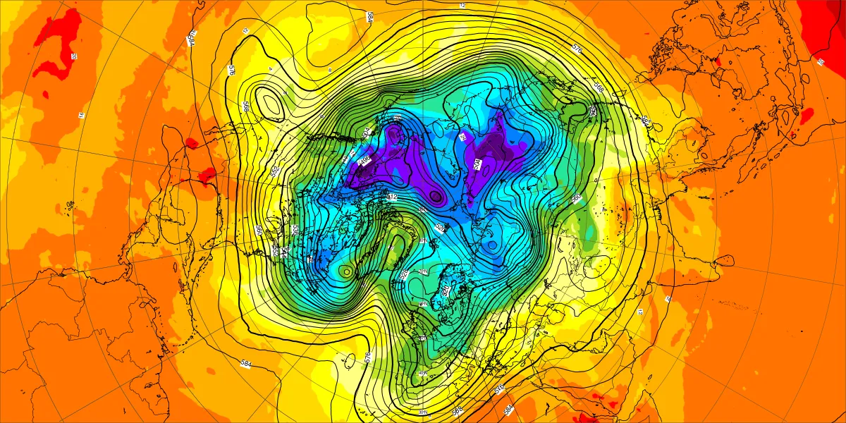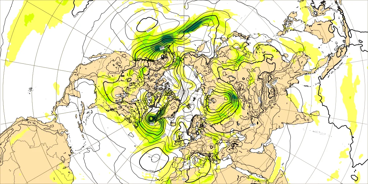 ・グリーンランドのリッジ:暖気北上、850hPa・-4℃線が85Nまで