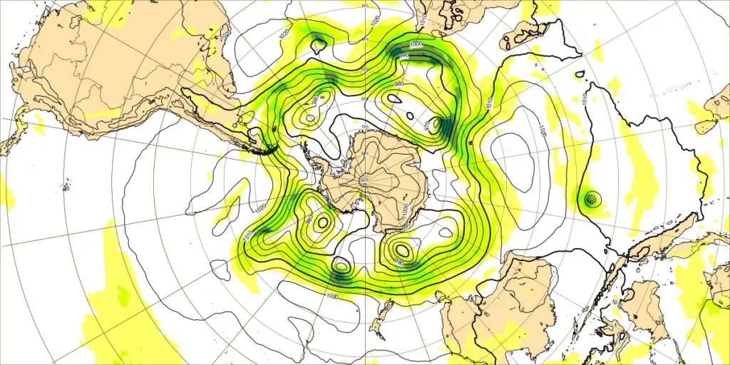 全球大気の流れ、寒気・暖気の状況:2026年1月6日12UTC