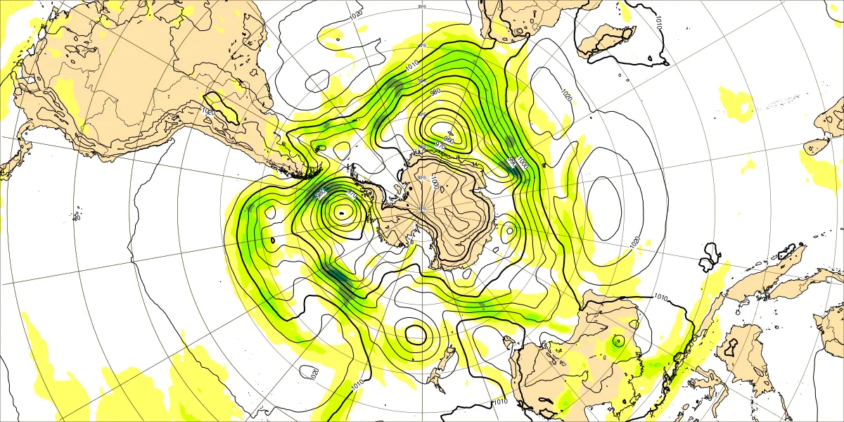 【南半球の500hPa流れ、850hPa気温】