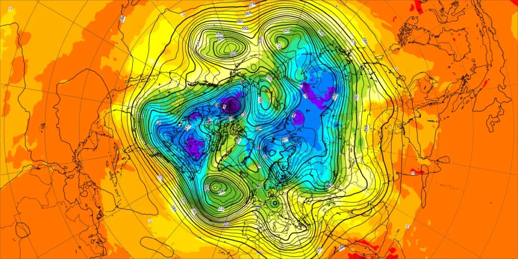 【北半球の500hPa流れ、850hPa気温】
