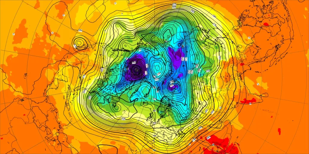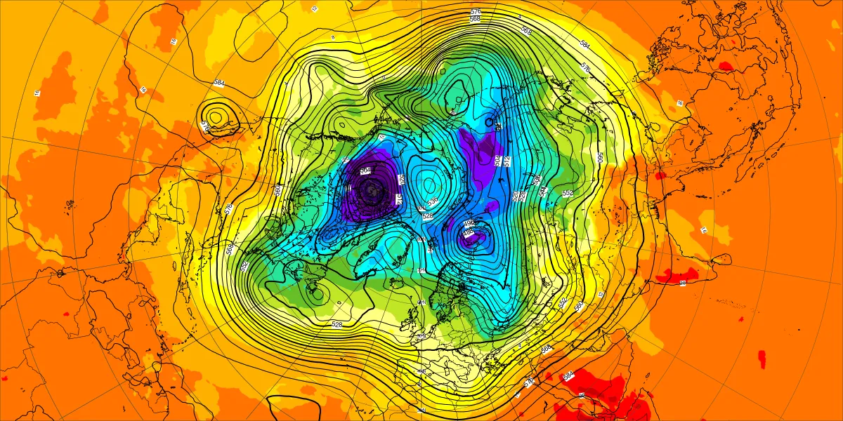【北半球の500hPa流れ、850hPa気温】