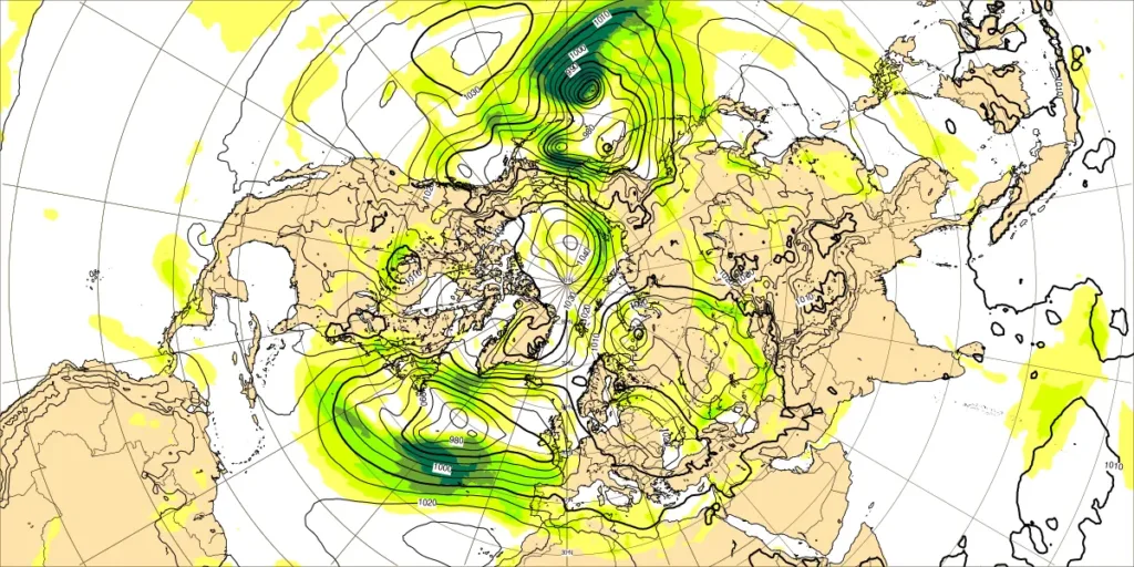 北半球海面気圧2月9日12UTC