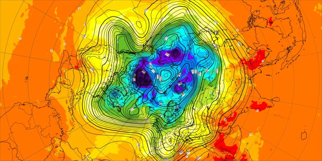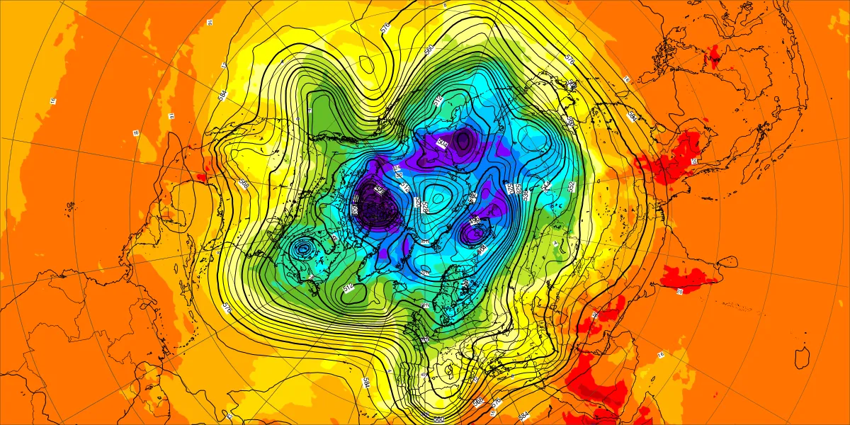 【北半球の500hPa流れ、850hPa気温】