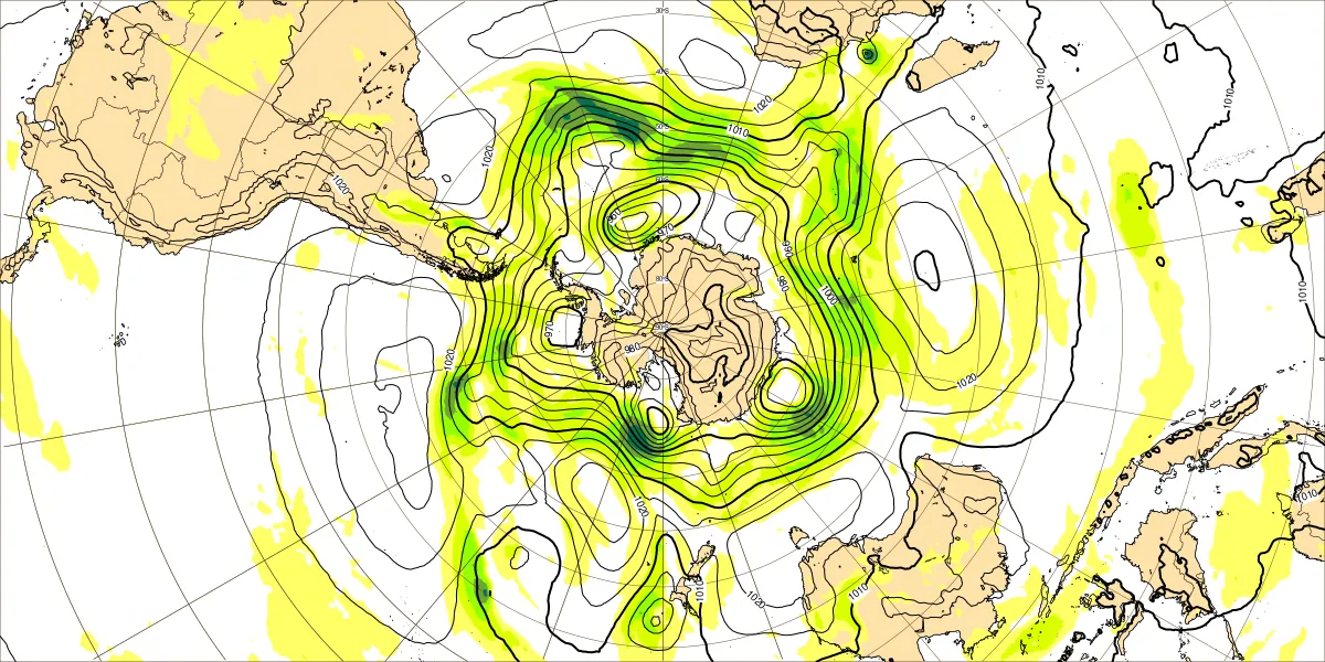 南半球海面気圧2月14日12UTC