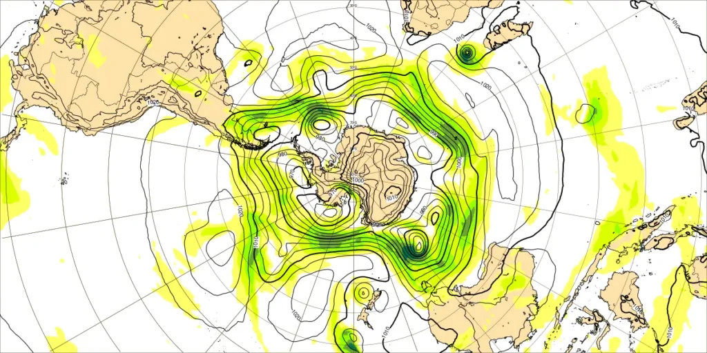 ・大西洋05Eの寒気トラフ:寒気北上、850hPa・0℃線が40S以北まで