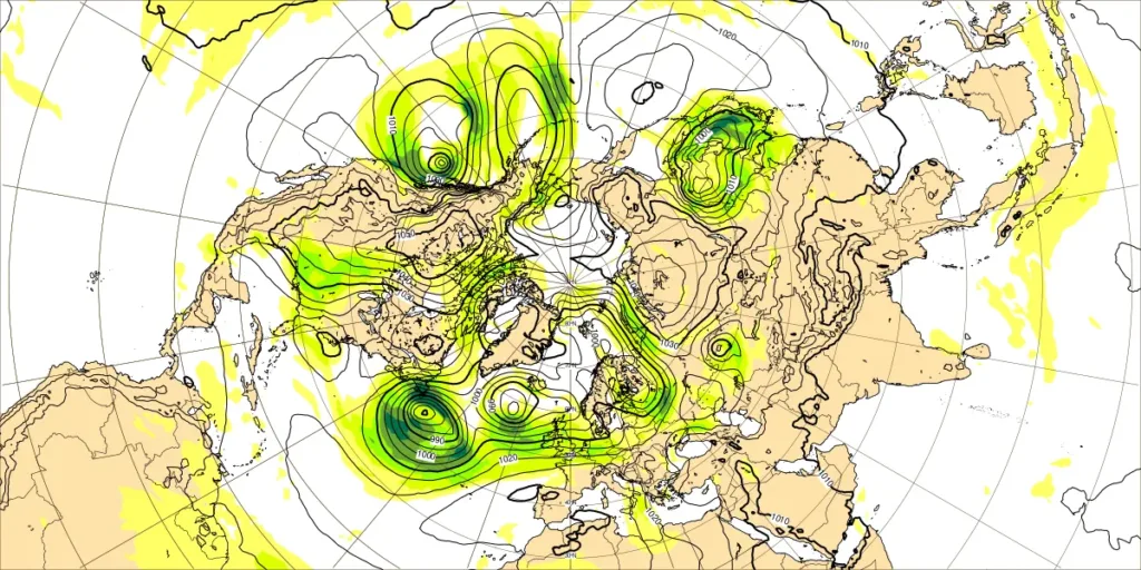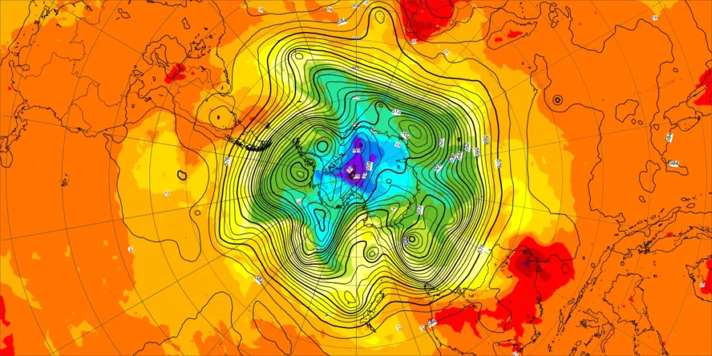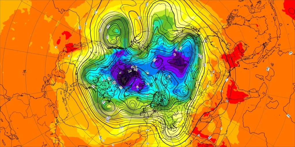 ・北大西洋50Wの寒冷渦:寒気南下