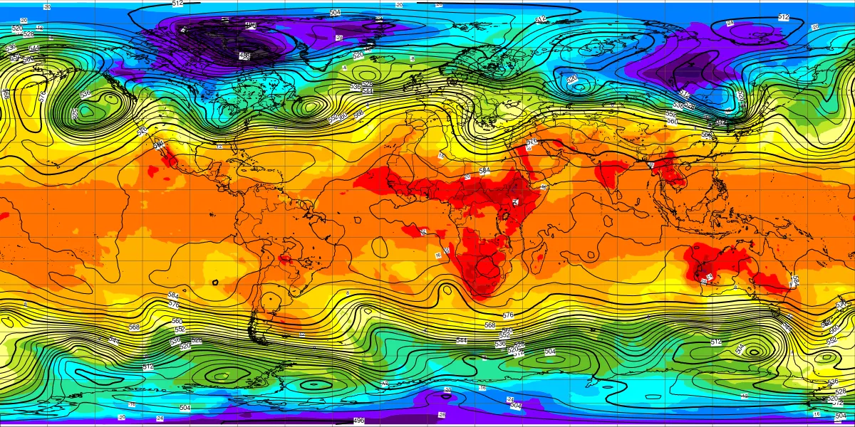 全球500hPa高度2月22日12UTC