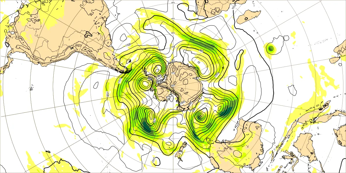 南半球海面気圧2月22日12UTC