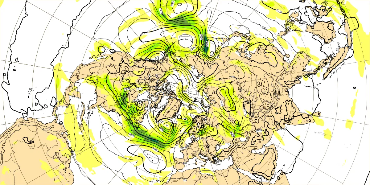 【北半球の500hPa流れ、850hPa気温】