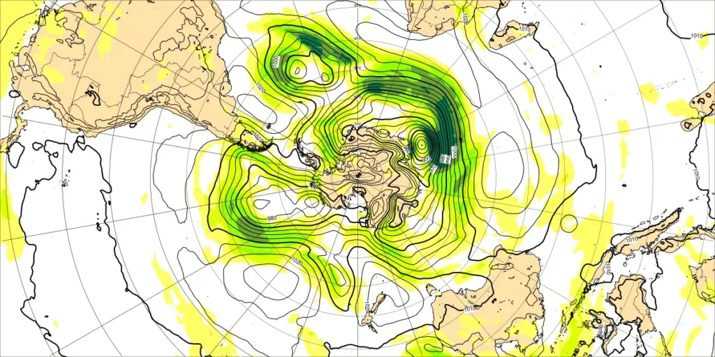・偏西風の蛇行は、小~大、特にバルト海の高気圧を周る流れで蛇行大