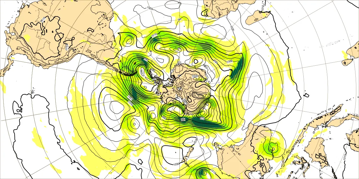 【南半球の500hPa流れ、850hPa気温】