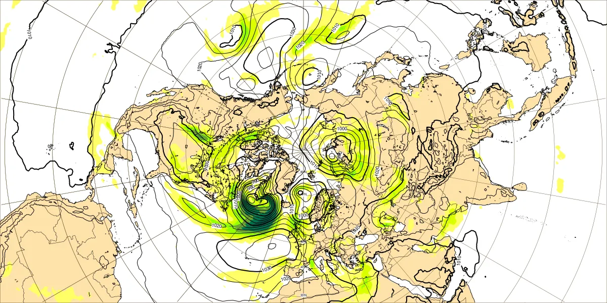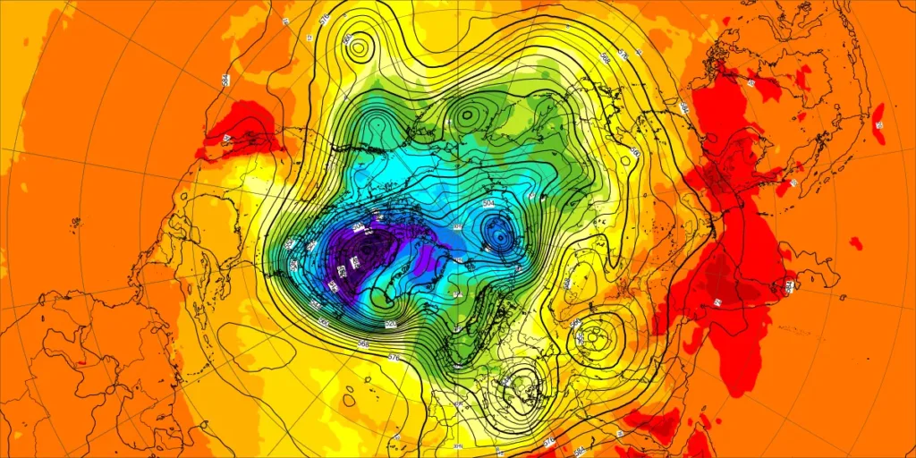 【北半球の500hPa流れ、850hPa気温】