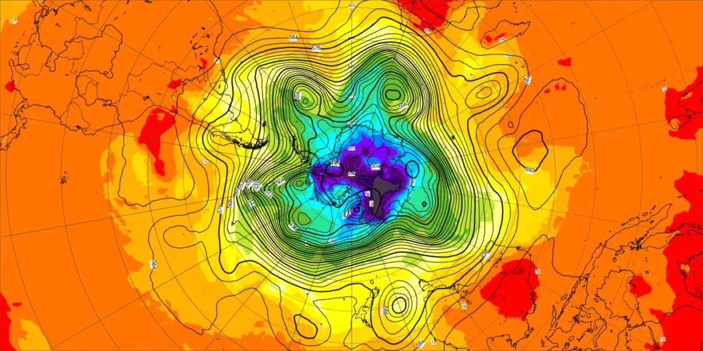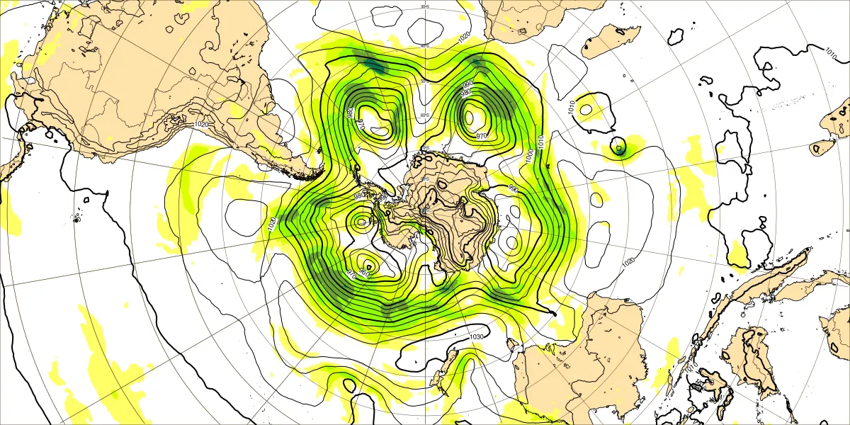 ・太平洋115Wの寒気トラフ:寒気北上、850hPa・0℃線が40S近くまで