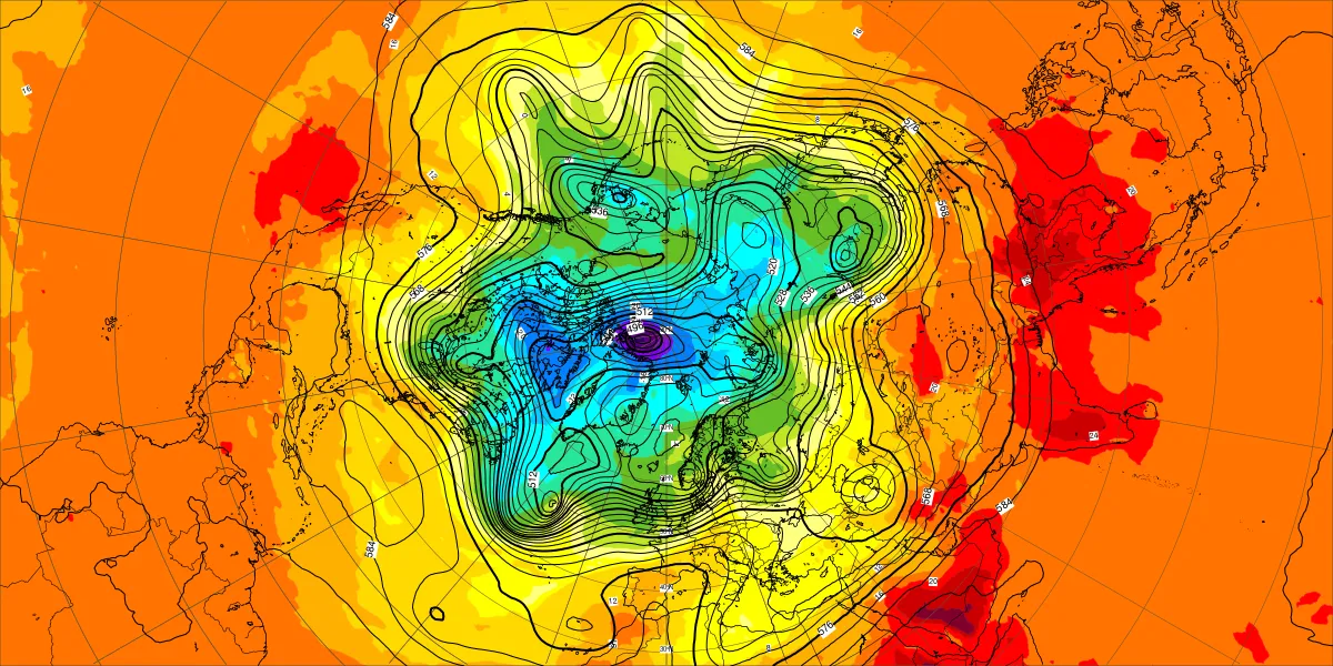 ・ヨーロッパのリッジ:暖気北上、850hPa・8℃線が50N以北まで