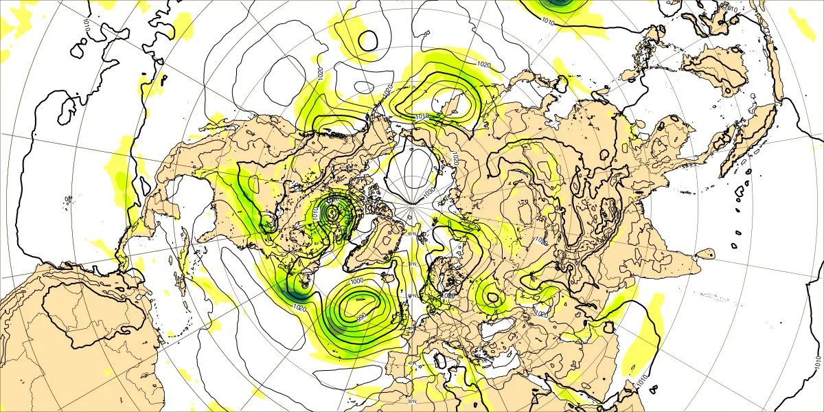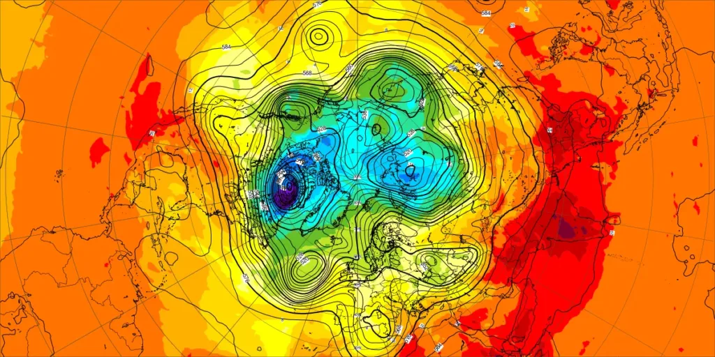 【北半球の500hPa流れ、850hPa気温】