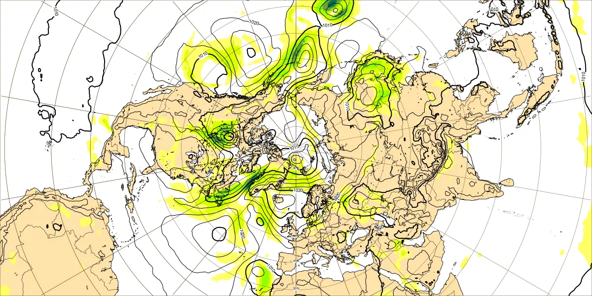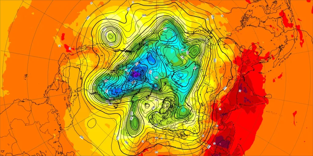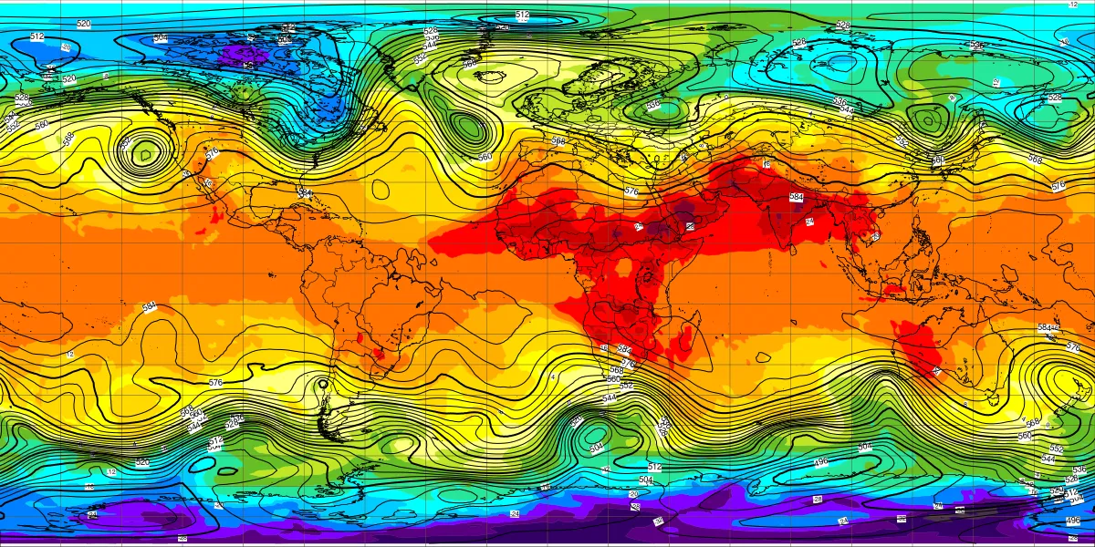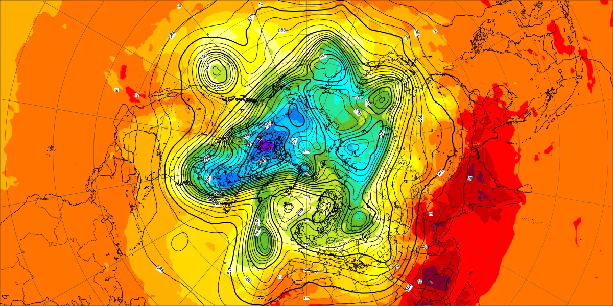 【北半球の500hPa流れ、850hPa気温】