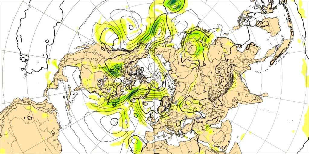 ・ロシア40Eの寒冷渦:寒気南下