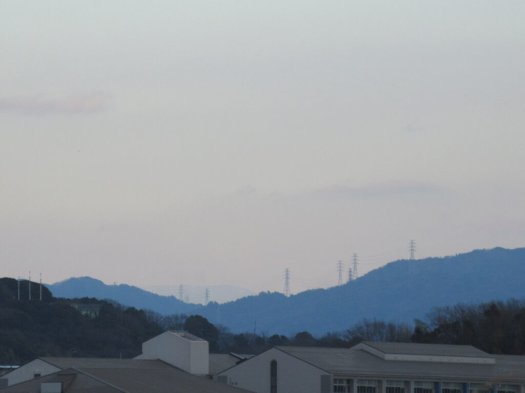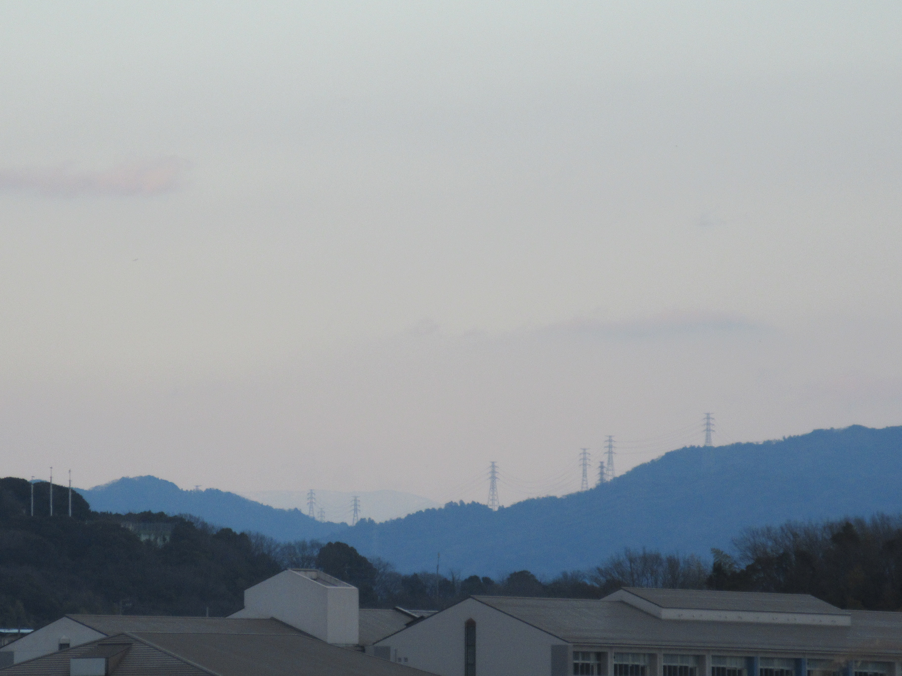 夕方、見通しが良くなって恵那山の稜線(中央左下)が見えてきた:同