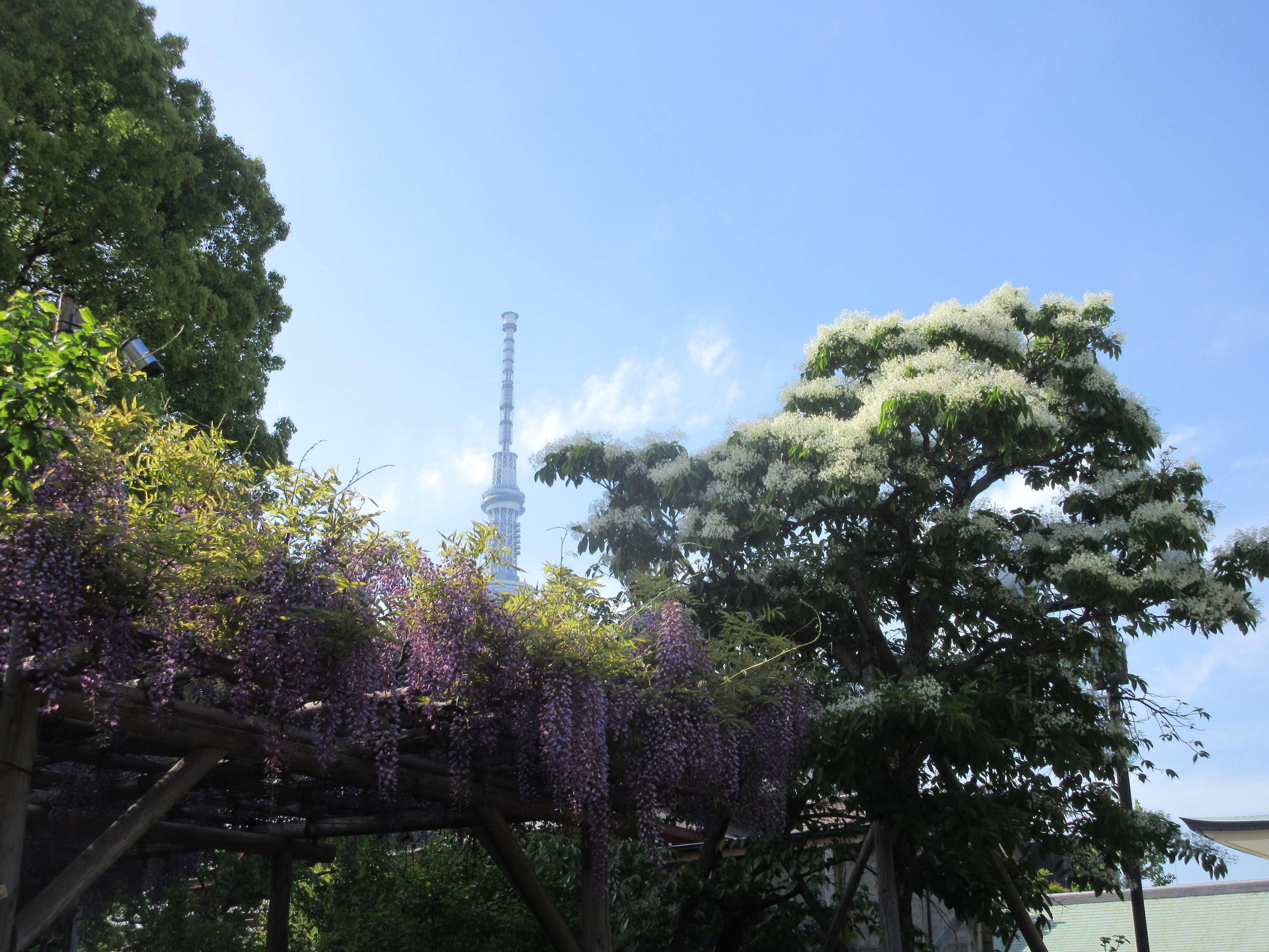 フジ、なんじゃもんじゃの木(ヒトツバタゴ)とスカイツリー