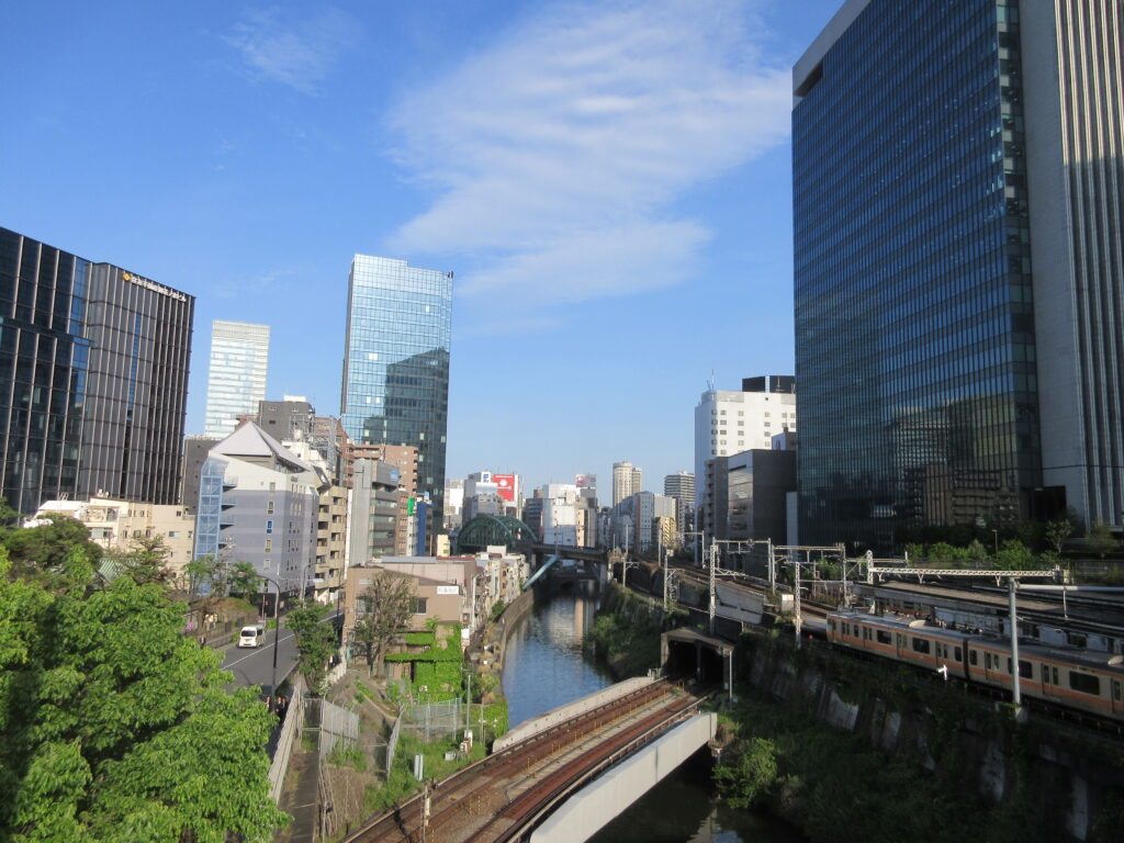 聖橋からの神田川、御茶ノ水駅、雲