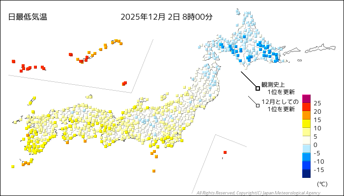 | 2025/12/2 | 8時までの最低気温平年差(小数点以下切り捨て) | |