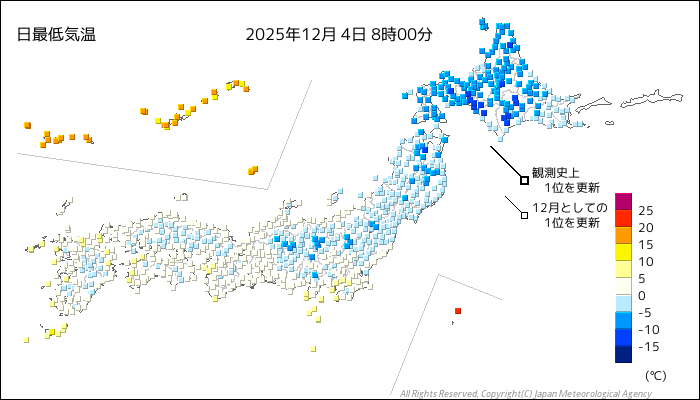 ※ 12月3日(日本時間24時まで)の国内気温記録更新:なし