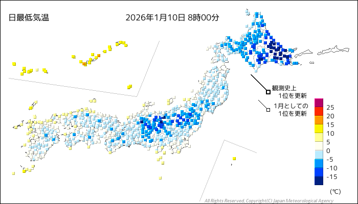 | 2026/1/10 | 8時までの最低気温平年差(小数点以下切り捨て) | |