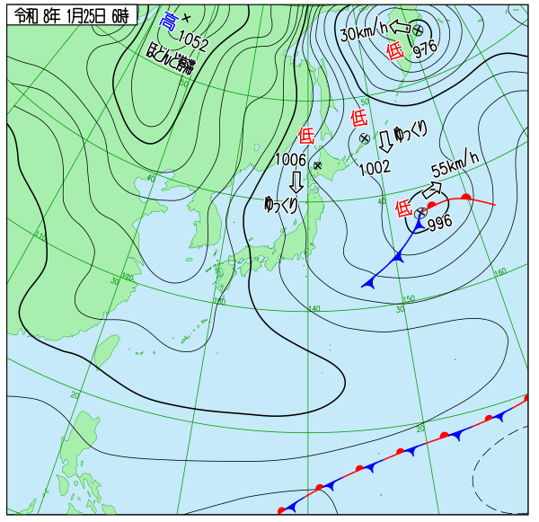 | 2026/1/25 | 8時までの最低気温平年差(小数点以下切り捨て) | |