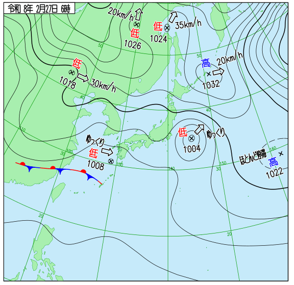 | 2027/2/27 | 8時までの最低気温平年差(小数点以下切り捨て) | |